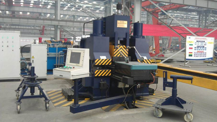 該設(shè)備是國(guó)際上最新機(jī)型,是船廠進(jìn)行肋骨加工的智能化設(shè)備。主要用于船體肋骨不同線型冷加工彎制,可加工球扁鋼、角鋼、T型材。通過對(duì)型材進(jìn)行自動(dòng)三維彎曲,可獲得平整的內(nèi)彎、外彎、S彎形狀的工件,也可進(jìn)行型材的校直和校平。工作過程是在全自動(dòng)狀態(tài)下進(jìn)行,并具備半自動(dòng)和手動(dòng)狀態(tài)下完成工作。